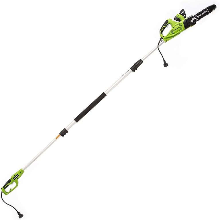 The Greenworks 10 inch 2-in-1 seven amp Pole saw/Chainsaw is lightweight and boasts a seven amp motor. Perfect for cutting branches and logs, this pole saw/chainsaw is a must-have addition to your garage. It Easily converts into a pole saw or chainsaw for ultimate versatility. Greenworks offers a range of systems to choose from in corded and cordless tools. Leading in innovation, the corded lawn system offers a variety of tools to get all your yard work done quickly and efficiently.Specifications