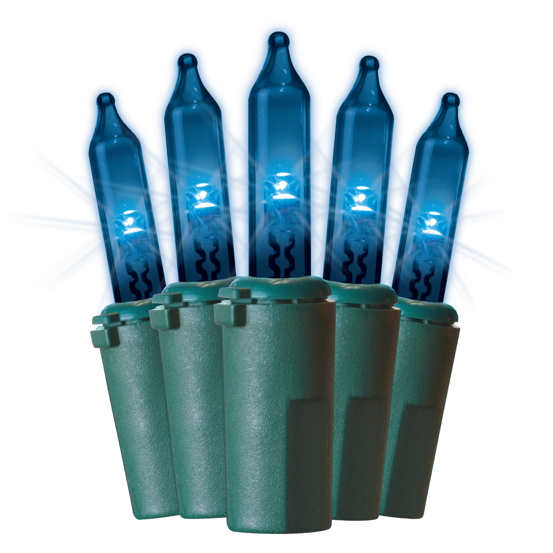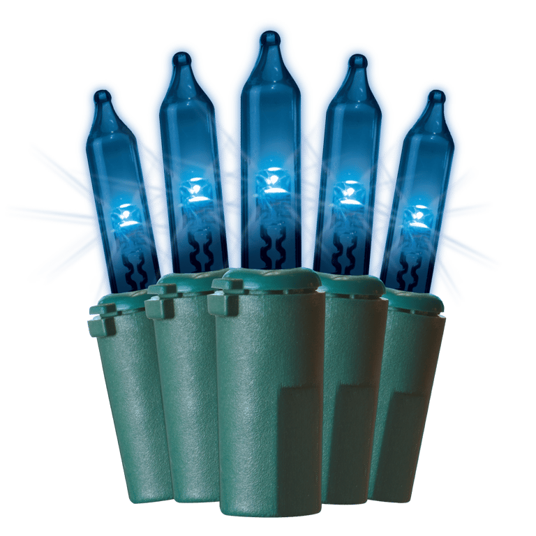 100LT. GLASS INCANDESCENT LOOK LED MINI SET; 12" X 3" X 4" SPACING; BLUE BULBS; GREEN WIRE; INDOOR/OUTDOOR
