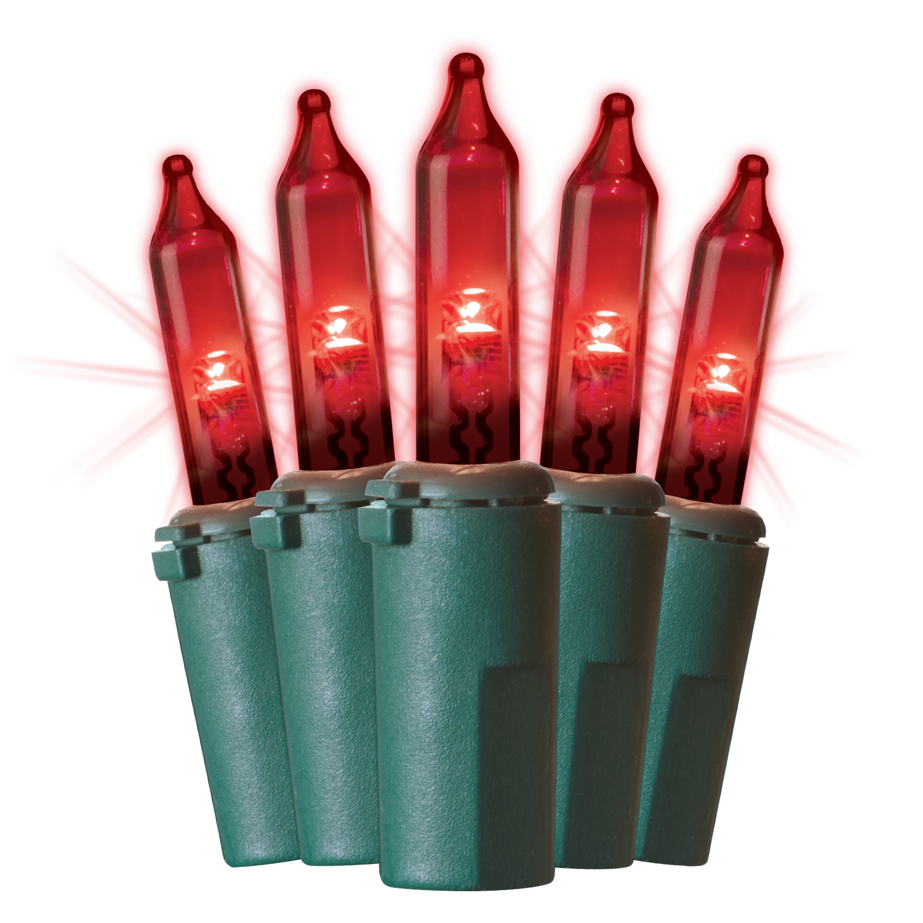 100LT. GLASS INCANDESCENT LOOK LED MINI SET; 12" X 3" X 4" SPACING; GREEN WIRE; INDOOR/OUTDOOR; RED BULBS
