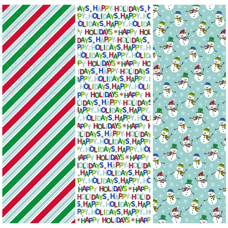 Super JUMBO Wrap Rolls with Traditional Designs. Three assorted Traditional Designs with easy cutting grid on the back. Total of 125' Sq. Ft.Specifications