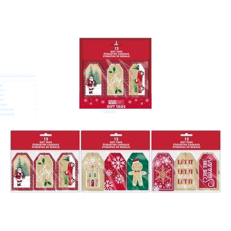 12ct Die Cut Kraft Gift Tags Traditional; Assorted Designs