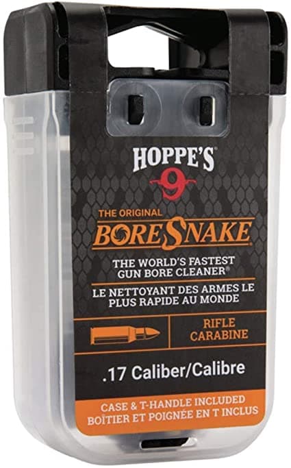 The Rifle Bore Snake scrubs and cleans the bore of your rifle in a single step. The built in, bench-quality phosphor bronze brush and braided floss scrub, clean and oil the bore in just minutes. Apply a few drops of bore cleaner to the front of the cord and oil to the end. Drop cord into the bore and pull through five times. The Rifle Bore Snake is washable and reusable and the lightweight design folds neatly away in new "den" carrying case for easy storage. Mfg: Hoppes.Specifications