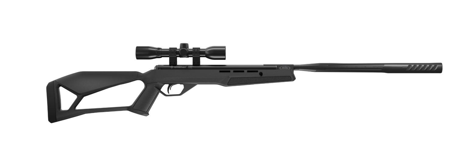 The Crosman Fire .177 break barrel air rifle boasts a lighter and smoother cocking force than others in its class. With Nitro Piston technology, the Fire has reduced recoil and shoots with 70% less noise. This rifle features a durable all-weather synthetic thumb-hole style stock and foregrip, rifled steel barrel, QuietFire sound suppression technology, two-stage adjustable trigger and 4x32mm scope. The Fire generates velocities up to 1200 fps and delivers power and accuracy in a contemporary package. Take it Outside with Crosman.Specifications