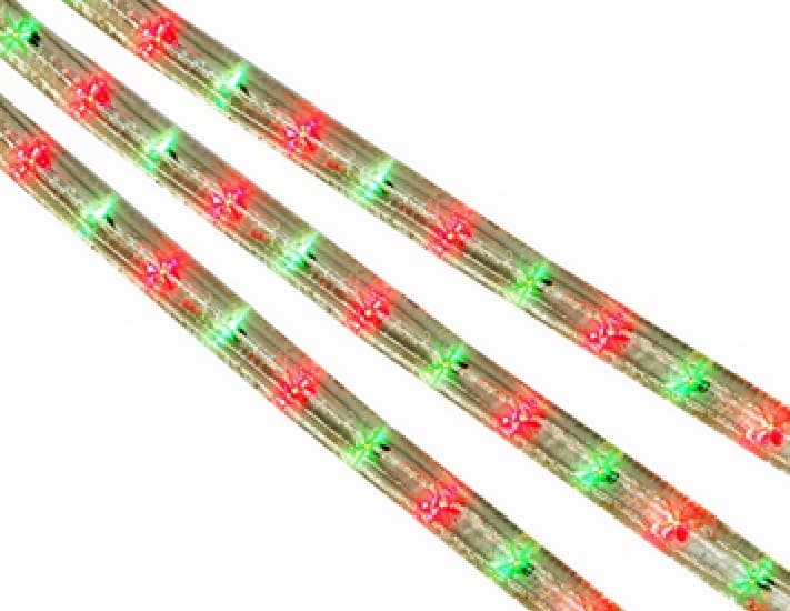 18' LED Rope Lights in Red/Green with connectable end cap encased in clear tubeSpecifications