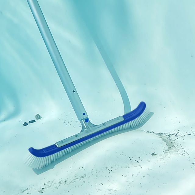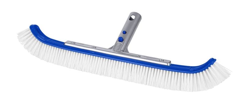 The Reinforced 18" Wall Brush is a necessary item for any pool owner. Now with a reinforced, polished aluminum backing, this item can be used for heavier cleanups. It also has a double-quick snap which makes attaching/detaching to a telescopic pole a breeze. The universal handle is designed to fit most telescopic pool poles. There are 5 rows of bristles with the ends having a slight angle to contour to the pool edges. Make sure to wash with clean water after every use to prolong the life of the brush.Specifications