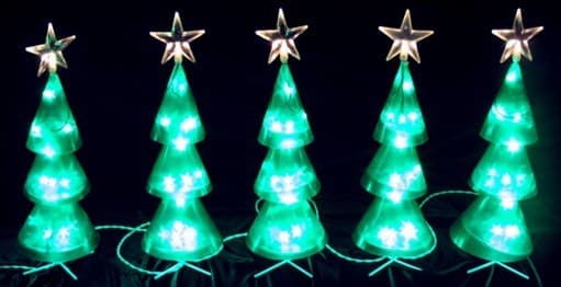 S/5 18" LIGHTED PVC GREEN TREE PATHWAY MARKERS; 100 UL LED LIGHTS; UL CERTIFIED; 24" LEAD X 24" SPACE X 4" E/C; EASY ASSEMBLY; QUICK TO DISMANTLE AND STORESpecifications
