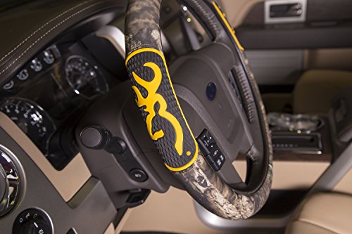Universal Vehicle Accessories protect, beautify and revitalize your car or truck interior! Spiff up your ride! You wax your fenders and polish your chrome . . . why not give the interior a little TLC give your vehicle a whole new look, and an extra layer of insulation from wear and tear. One-size-fits-most designs are optimized to fit a wide array of car and truck types, providing a removable, washable, like-new upgrade! Get a stylish look for a fraction of the cost! Keeps wheel warm in winter, cool in summer; Comfort grip; Repels dirt and moisture; Colorfast, even in direct sunlight. Protect your hands from heat and cold with this durable Signature Automotive Browning 2 Grip Steering Wheel Cover. The cover slips over your existing steering wheel quickly and easily to protect your steering wheel and show off your Browning pride.Specifications