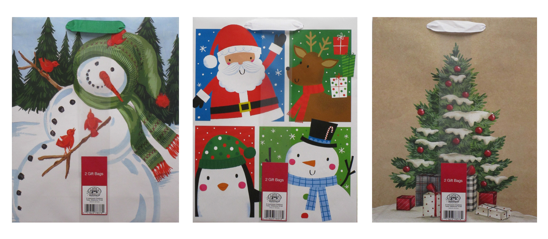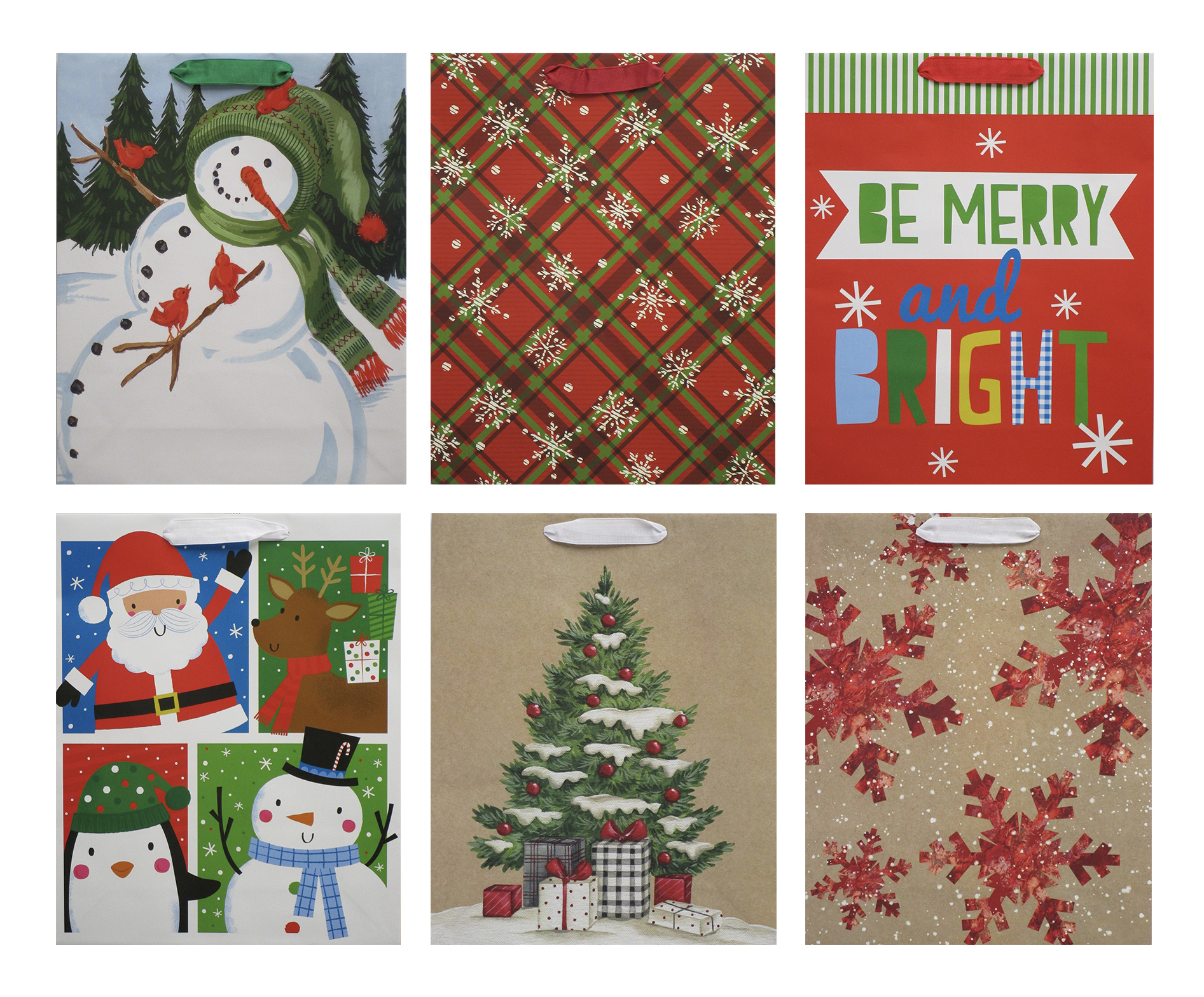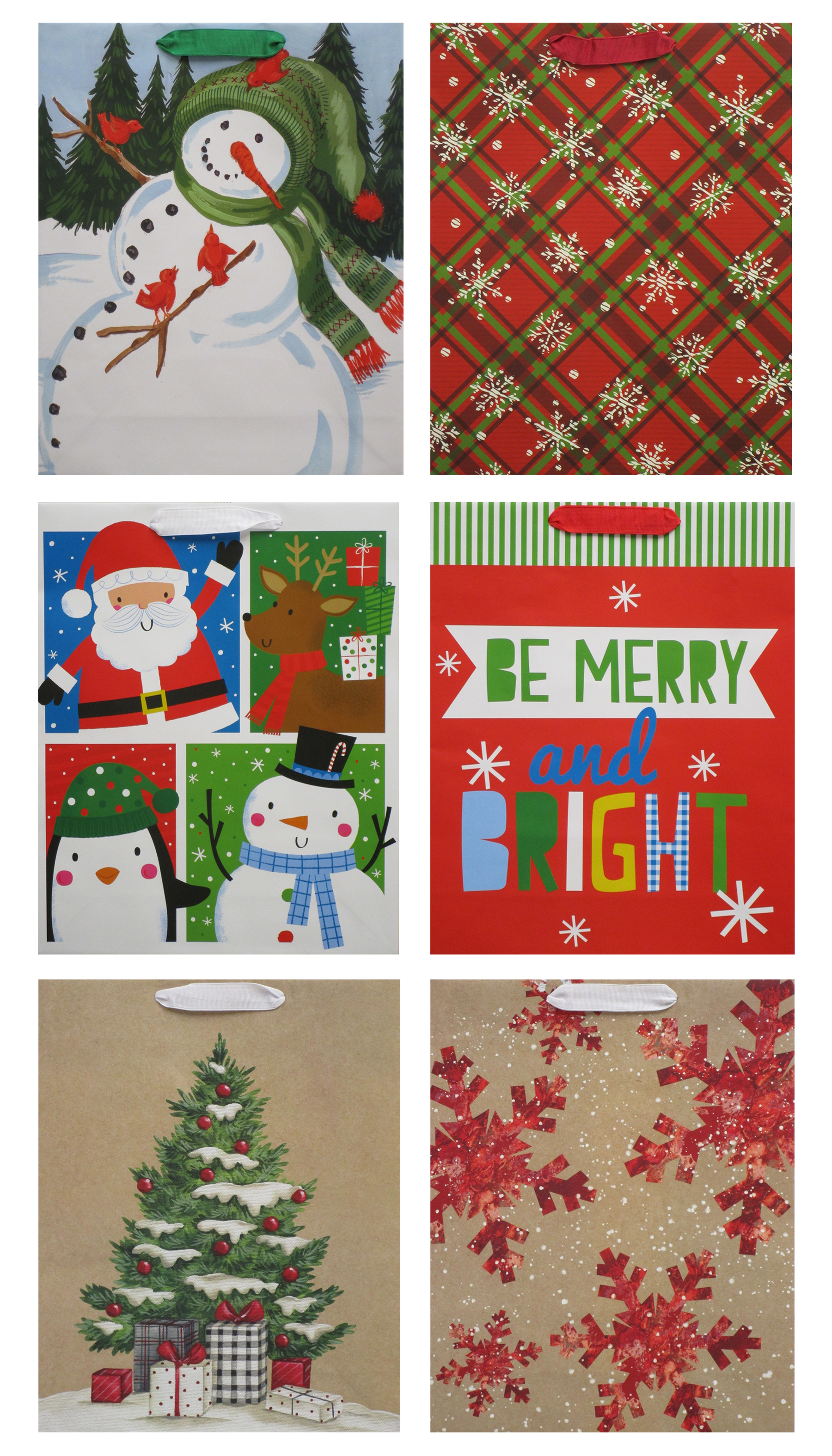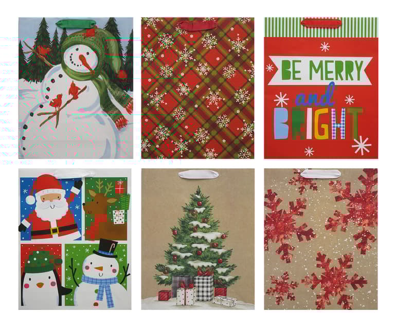 CHRISTMAS GIFT BAGS IN ASSORTED TRADITIONAL, WHIMSICAL AND KRAFT DESIGNS; 1 PC EACH OF 2 DESIGNS PER PACK; 15"H x 4"W x 12"dSpecifications