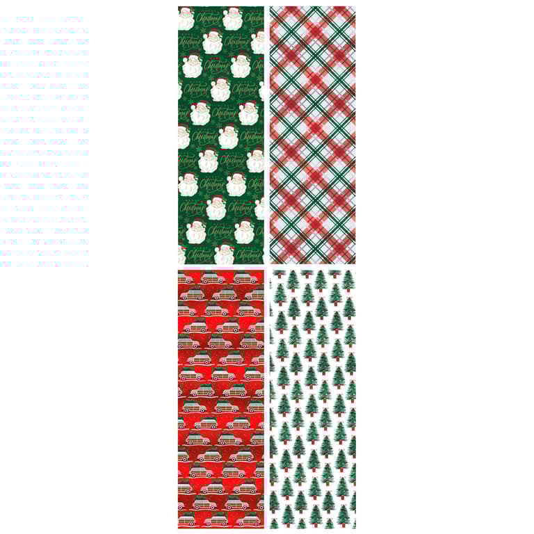 (30"x 8'); 20 SQ FT WRAP; 4 DESIGNS; EASY TO CUT PRINTED GRID ON BACK; FOIL; MADE IN USA; MODERN HERITAGE; TRADITIONAL