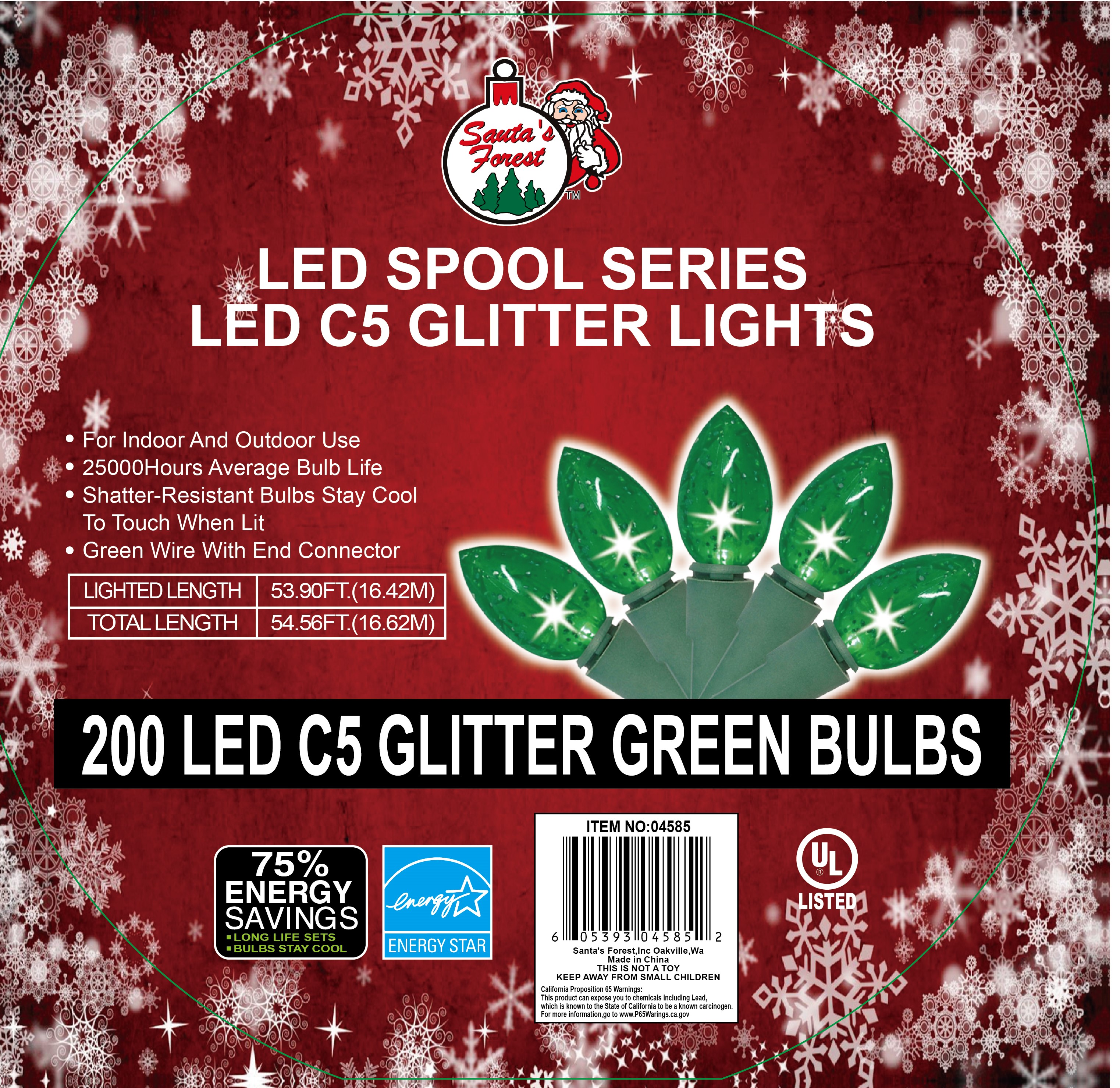 200 LED C5 GLITTER GREEN BULBSSpecifications