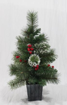 24" PINE BERRY POTTED TREE; 41 TIPS; BERRIES; MIXED NEEDLE; PLASTIC URN