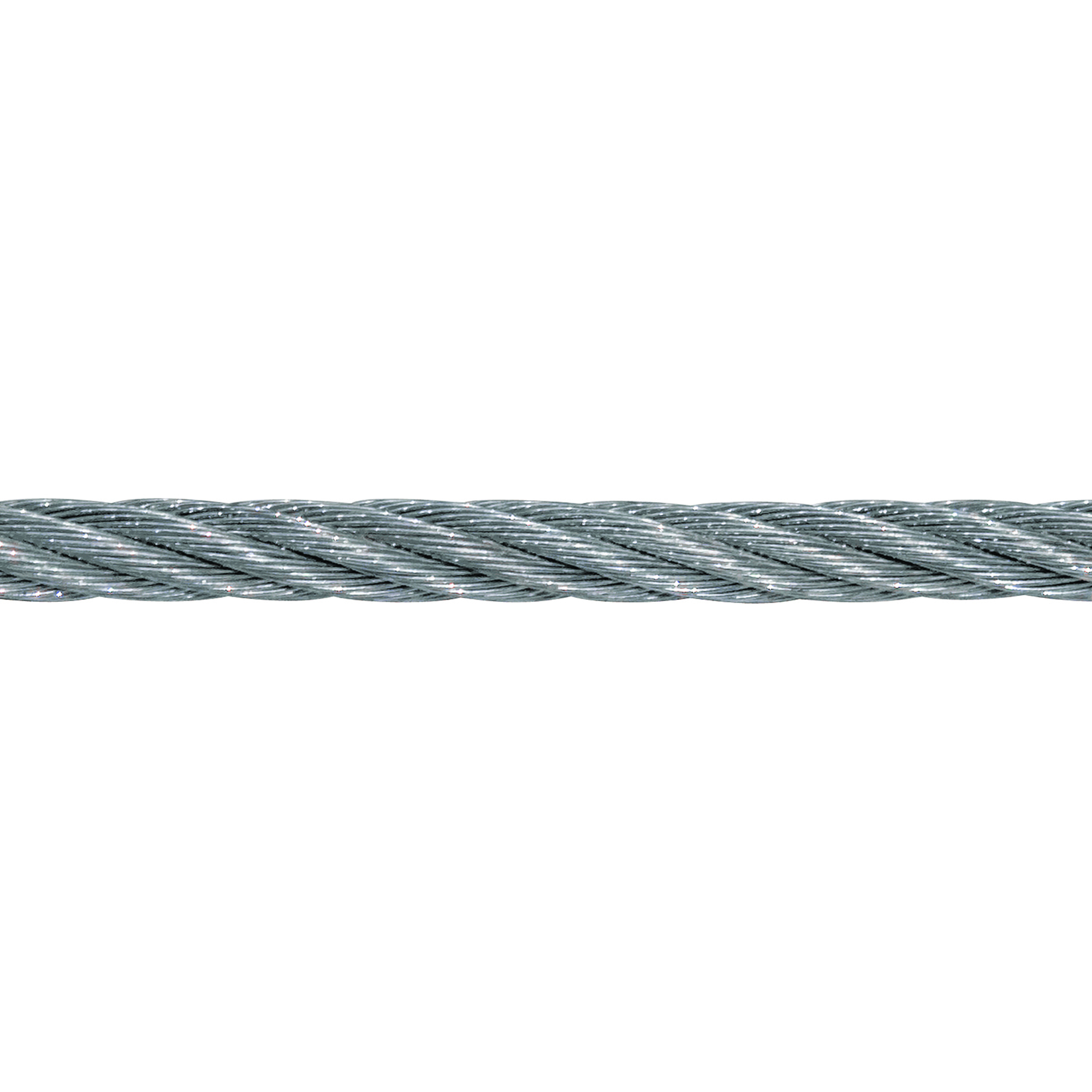 7x19 construction consists of 19 individual wires spiraled around a center wire to form a strand; Galvanized finish provides good corrosion and rust resistance; Includes 2 - 3/16 in wire rope thimbles; Includes 4 - 3/16 in wire rope clips; Safe work load of 850 lbs; This construction provides superior strength, flexibility and abrasion resistance compared to 7x7 cable; Use for garage door cables, winch lines, guy wires for flag poles and much more