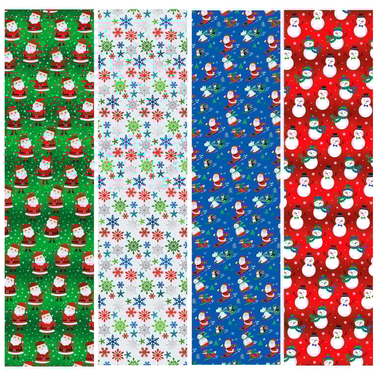 4 designs to choose from; Foil Christmas Wrap; Grid Line printed on reverse for easy cutting; Heavy paper; Traditional; Whimsical