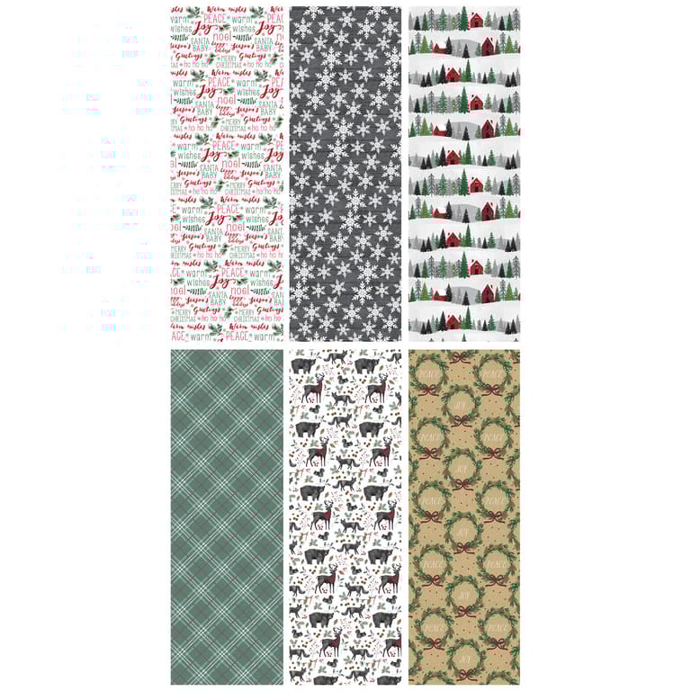 Beautiful Contemporary Full Printed Christmas Wrap. Anyone would love to receive a gift wrapped in one of these designs. Grid Printed on back for easy cutting! Total of 35 SQ FT. 6 designs to choose from.THIS IS AN ASSORTMENT. CANNOT GUARANTEE A SPECIFIC PATTERN WHEN ORDERING ONLINE.Specifications