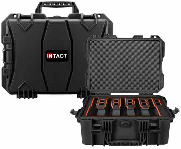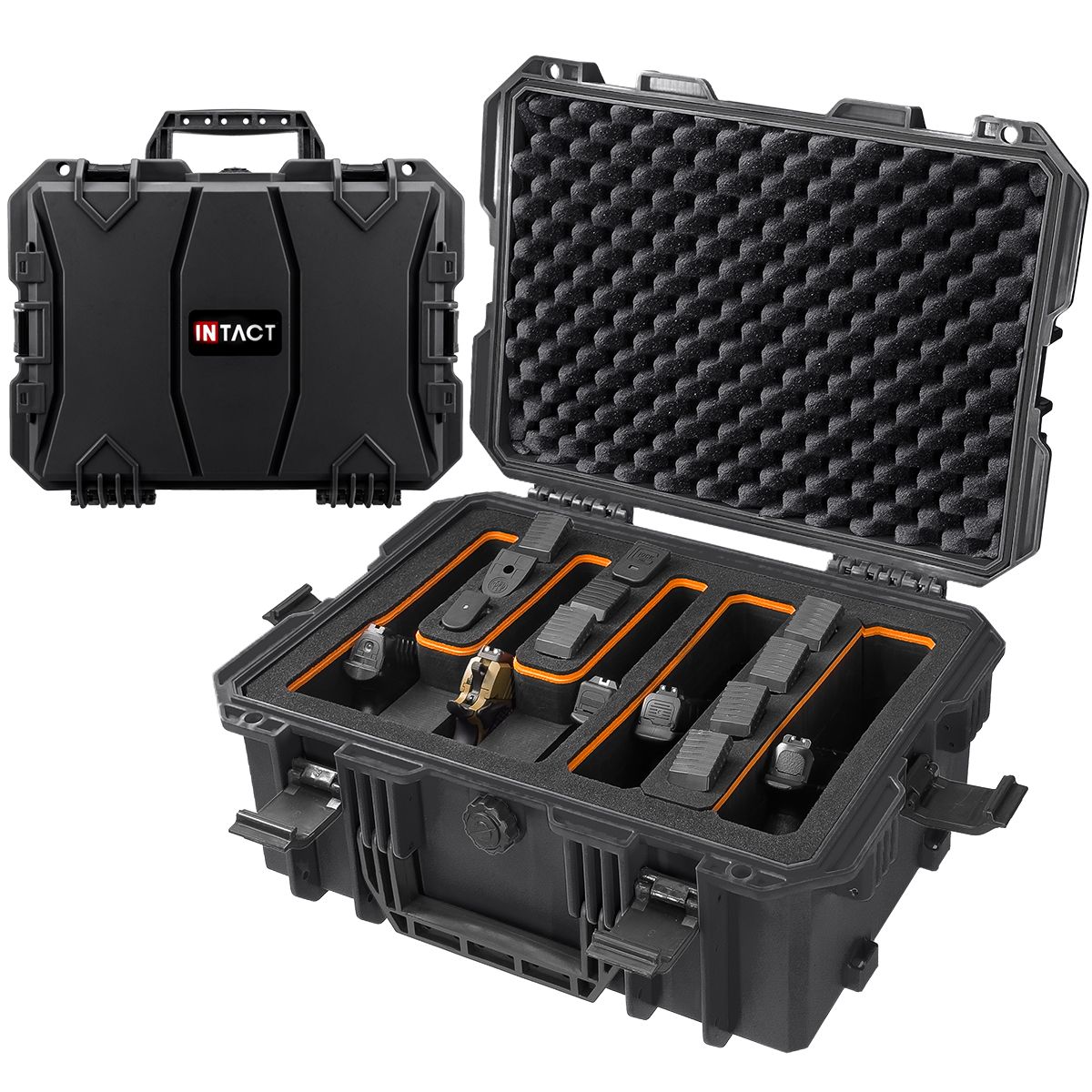 5 guns and 10 mags; Internal dimensions 16.3" x 11.8"x7.3"; Pre-cut handgun foam; stacks with all Intact Stacker series cases; two padlock mounting points; waterproof and shockproof