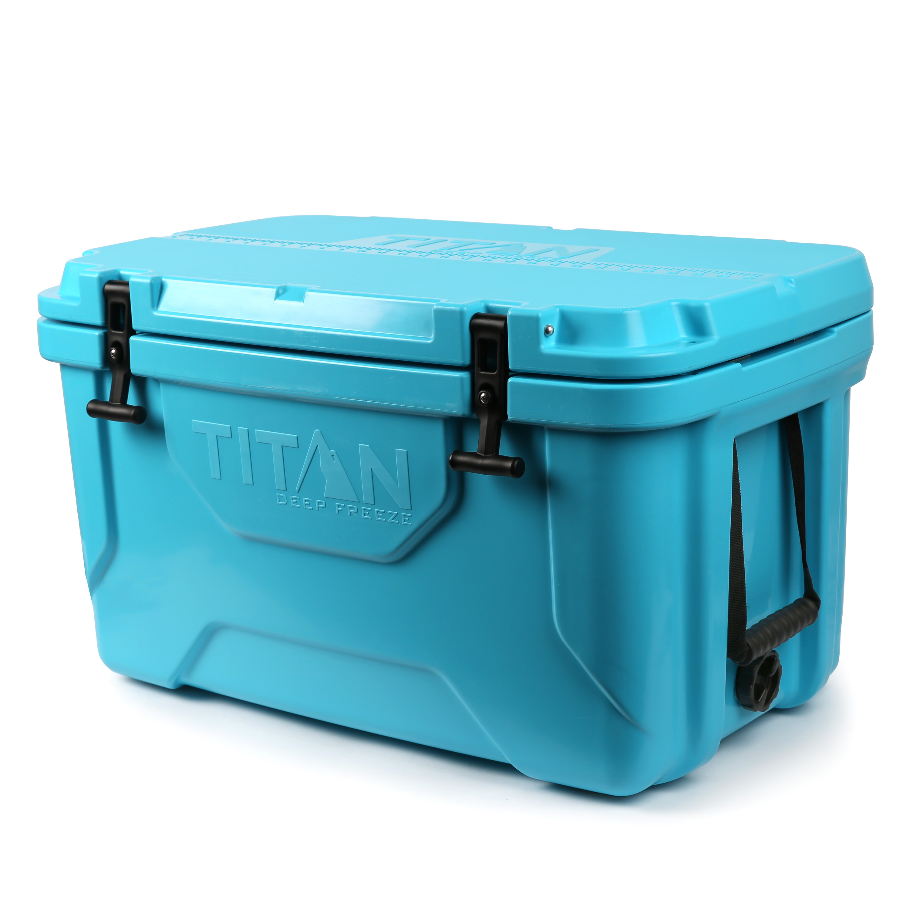 The Titan Deep Freeze 55 Quart High performance Roto Cooler has Microban antimicrobial protection built right into it and is constructed with a premium blend of thick polyurethane insulation that maximizes ice retention for up to 8 days!Microban is built-in protection that is guaranteed to last the lifetime of the product. It not only helps to prevent the build-up of bacterial odors and stains, but also makes the cooler easier to clean.The coolers uni-body roto molded construction, 360 rubber gasket and heavy-duty, corrosion resistant T-latches provide a tight seal to keep the cold inside.Also included is a sturdy wire basket to separate dry foods from wet, an oversized drain, anti-skid feet and an integrated fish ruler. And in case of unexpected campsite visitors, the Titan Deep Freeze Roto Cooler is certified bear resistant by the Interagency Grizzly Bear Committee!Specifications