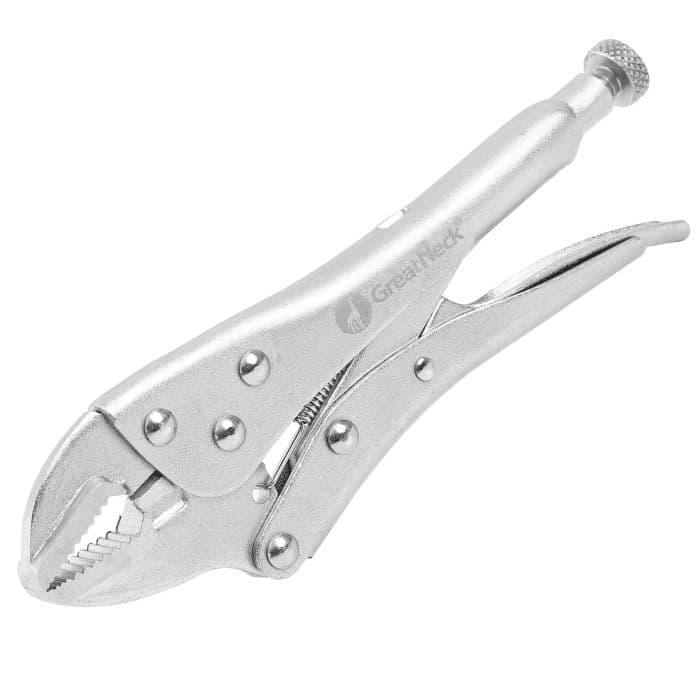 Adjusting screw for pressure and fit quick release locking system to prevent accidental release; Built-in wire cutter for added utility and versatility; Chrome Plated to Resist Rust; Drop Forged Heat Treated Steel for Strength and Durability; Milled jaws for maximum gripping power