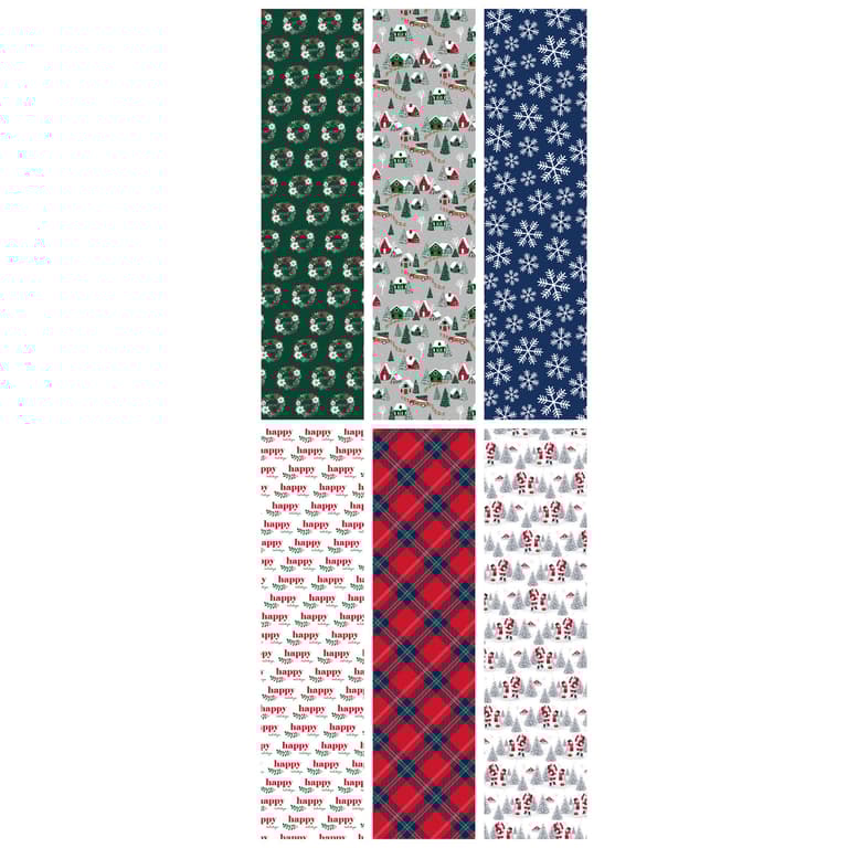 This Traditional Christmas Wrap of Folk prints can be used for any gift receiver! Colorful and classic designs. 75 Sq. Ft. heavy paper with grid line printed on reverse side for easy cutting. Each are 30" by 6' rolls. 6 designs to pick from.THIS IS AN ASSORTMENT. CAN NOT GUARANTEE SPECIFIC PATTERN WHEN ORDERING ONLINE.Specifications