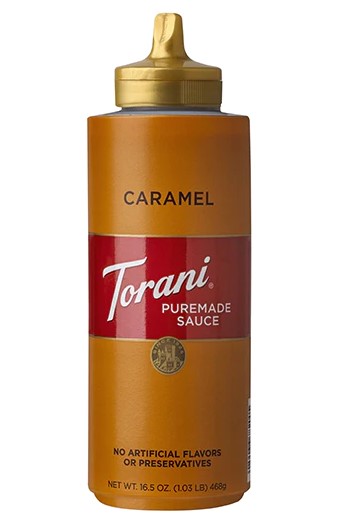 Torani Puremade Caramel Sauce has a rich, buttery caramel flavor that achieves the authentic burnt brown sugar taste found in artisan caramel. Removed from this formulation are mono-and diglycerides and artificial preservatives. Expertly crafted to compliment beverages for perfectly blending into coffee and frozen drinks, and for use as ice cream topping.Torani Puremade Sauces feature real,simple ingredients, including pure cane sugar, Dutched cocoa,caramelized sugar, fresh cream and no artificial flavors, colors or preservatives.Specifications