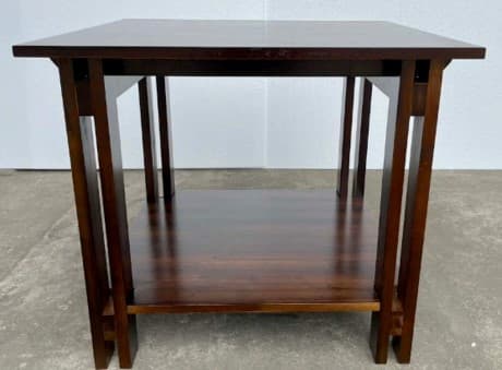 Solid Acacia Wood Arts and Crafts Style End Table in Rich Mahogany Finish; Large format Size Profile; with 35mm Heavy Duty Thick Tabletop; Double Panel Legs w Bevelled Supports; Size 24"w x 24"d x 24"hSpecifications