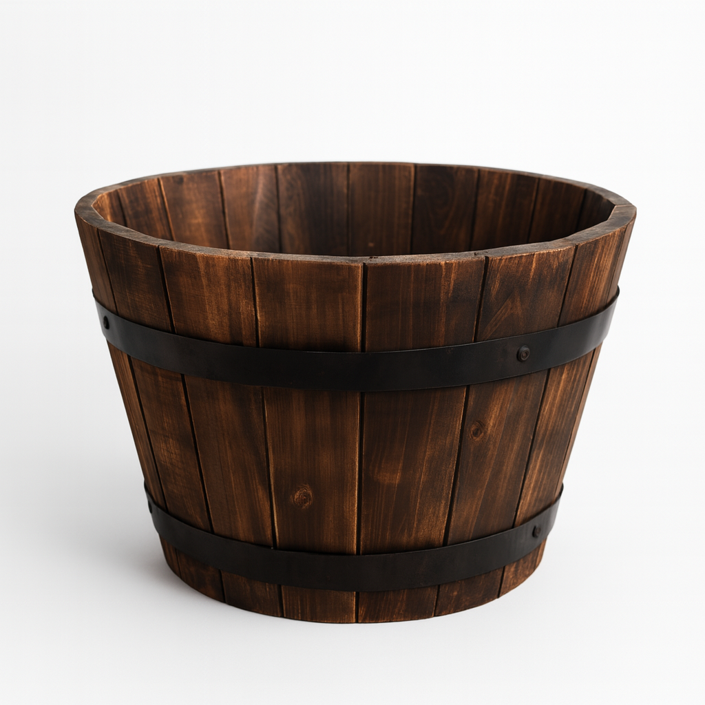 100% Acacia Hardwood; 14 Inch Diameter; Burnt Finish; Pre-drilled drainage holes