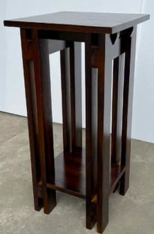 Solid Acacia Wood Arts and Crafts Style Plant/Telephone Table in Rich Mahogany Finish; Large format Size Profile; with 35mm Heavy Duty Thick Tabletop; Double Panel Legs w Bevelled Supports; Size 27"h x 13"w x 13"dSpecifications