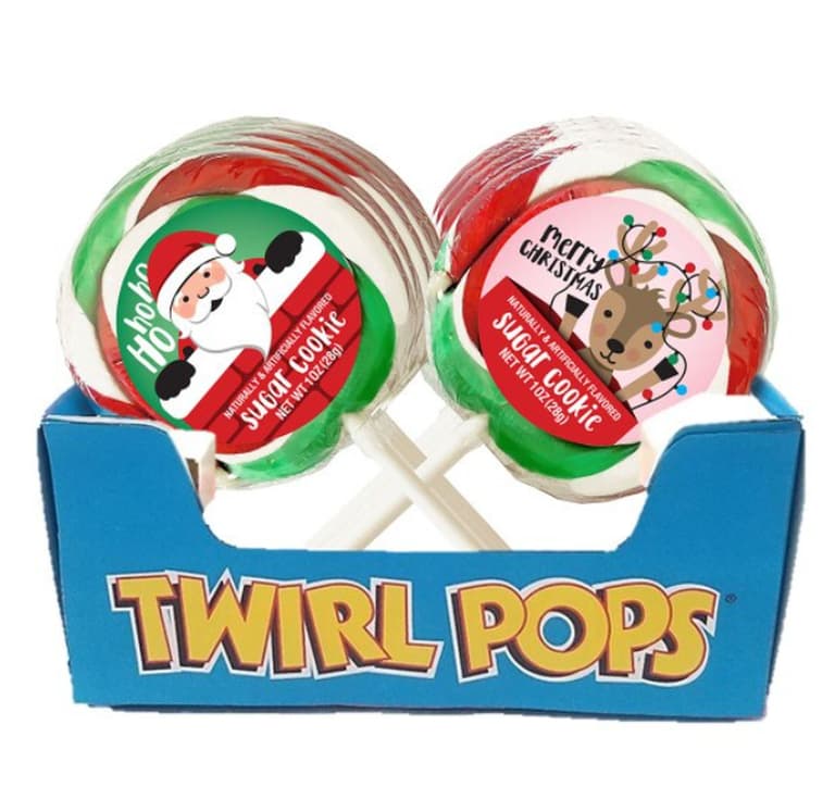 1 OZ; CHRISTMAS TWIRL POP; RED AND GREEN; SUGAR COOKIE