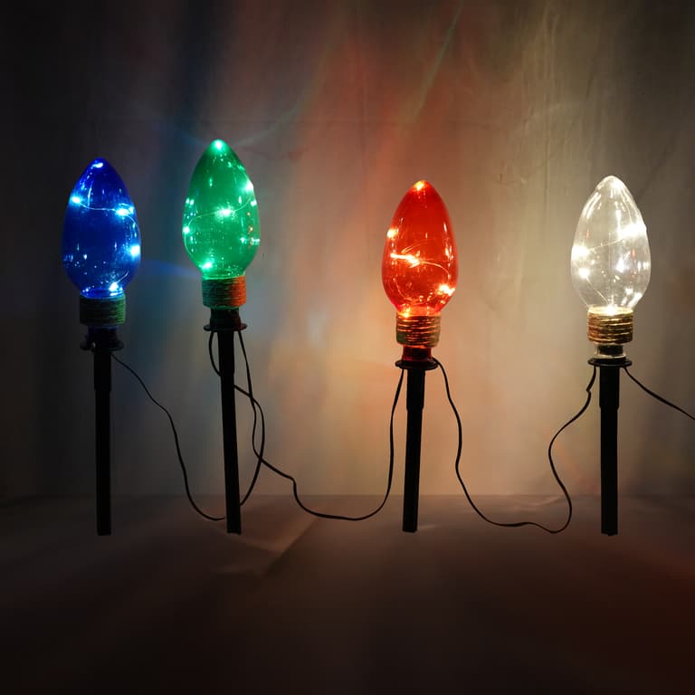 Durable: Weather-resistant plastic ensures long-lasting use, even in snow or rain; Easy Installation:; Festive Design: Light bulbs w/ vibrant LEDs bring colorful cheer to pathways or gardens.