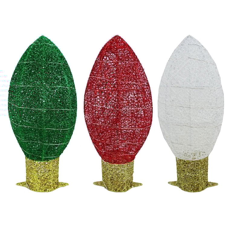 Add a vibrant, festive glow to your holiday setup with the Green/Red/White Thread Light Lamp. Standing at 21 inches tall with dimensions of 9"L x 5"W, this elegant lamp is wrapped in colorful thread accents, perfectly blending traditional holiday hues with a modern design. It features 25 warm white LEDs that emit a cozy 2-lumen glow, creating a soft, inviting ambiance ideal for any space. Powered by a waterproof battery box requiring 3 AA batteries, it offers flexibility for both indoor and outdoor use. Whether placed on a mantel, entryway, or as a centerpiece, this charming lamp brings warmth and holiday spirit wherever it shinesITEMS SOLD SEPARATELY. CAN NOT CONFIRM COLOR WHEN ORDERING ONLINE.Specifications