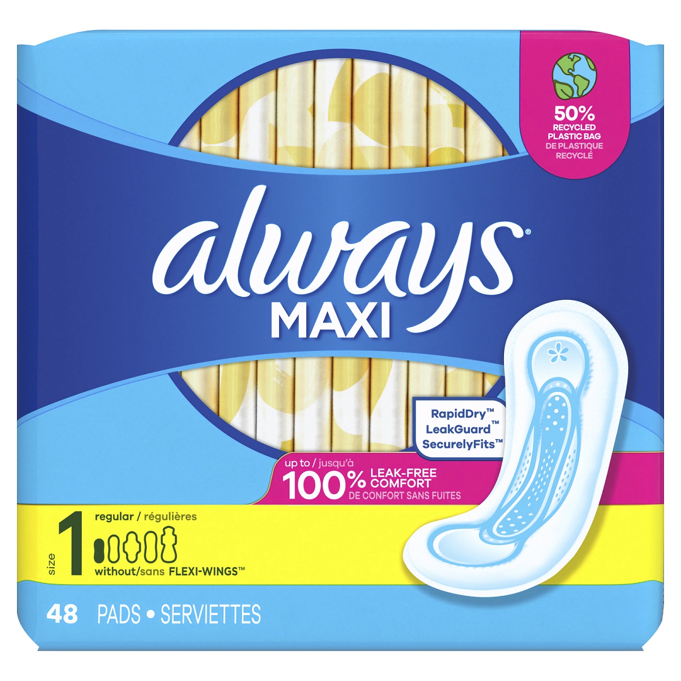 Maxi Regular Pads Without Wings Unscented Unscented, Size 1 Maxi. Deep channels pull fluid into the core away from the edges to help stop leaks. LeakGuard Core absorbs in seconds for up to 8 hrs.Specifications