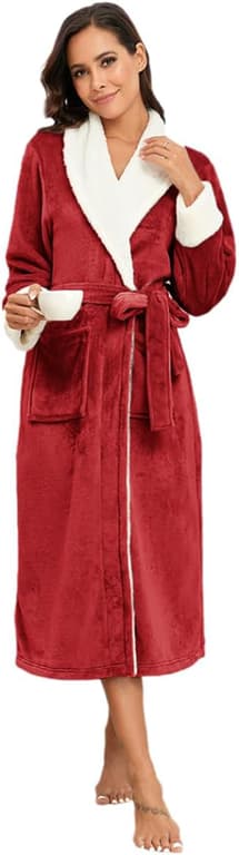 COZY PLUSH FLEECE ROBE WITH ATTACHED BELT TO SECURE AND TWO OUTSIDE POCKETS, A SURE THING TO KEEP YOU WARM AND COZY.Specifications