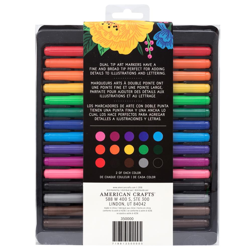 Dual tip art markers have a fine and broad tip perfect for adding details to illustrations and lettering. This 7.25x8.625 inch package contains 30 markers. Conforms to ASTM D4236Specifications