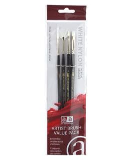 Art Advantage Set White Nylon Acrylic- Set consists of white nylon round 4, Flat 5, 6 and a fan 1. Soft white with wood handles and nickel plated ferrules.Specifications