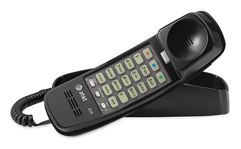 10 STATION SPEED DIAL; 3 ONE-TOUCH MEMORY BUTTONS; BACKLIT KEYPAD; HANDSET VOLUME CONTROL; TRIMLINE BLACK CORDED PHONE; WALL MOUNTABLE/MOUNT INCLUDED