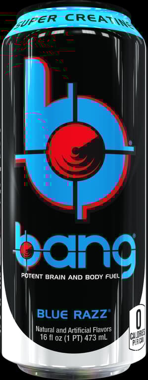 Bang is not your typical sugar-filled soda masquerading as an energy drink. Every 16-ounce can of Bang contains 300 milligrams of caffeine, Bang is sugar-free and has ZERO calories yet it tastes great.