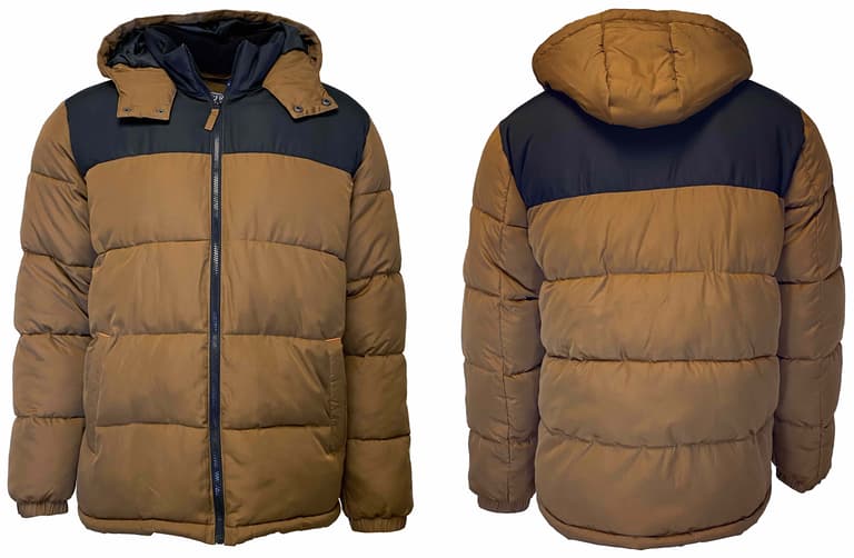 CHANNEL QUILTED; COLOR BLOCKED; FULL ZIP CLOSURE; HEAVY WEIGHT; HOODED