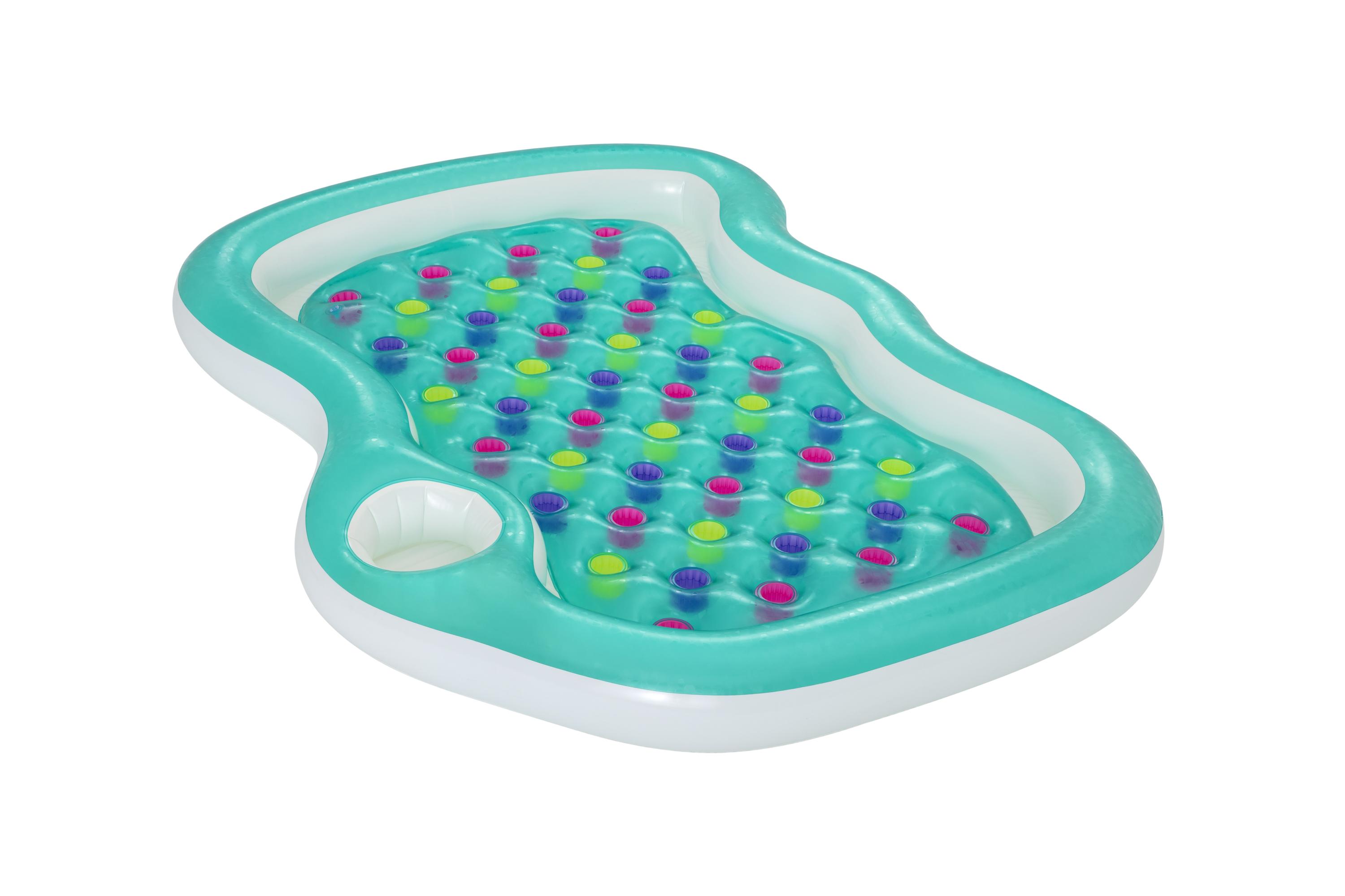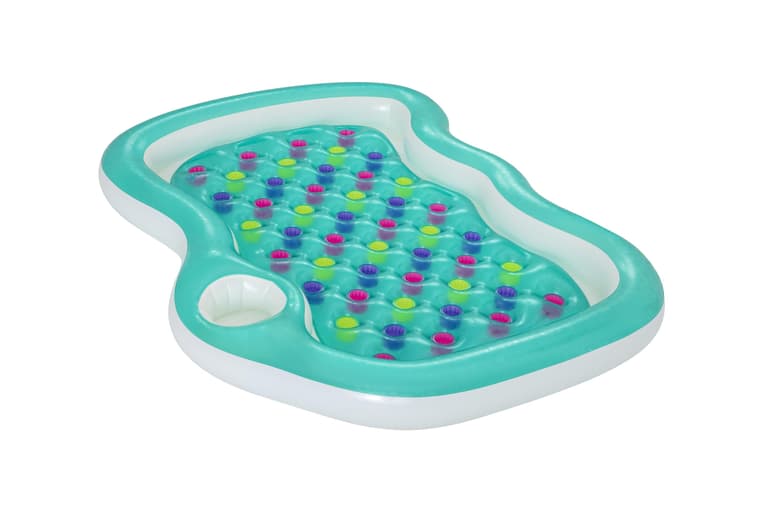 Designed to get kids and adults! moving playing and out of the house the Double Designer Lounge by Bestway puts the focus back on fun! Relax or sunbathe in and around the pool on this highly comfortable Double Designer Lounge. The 2-persons floating lounge with a metallic colored outer ring and bottom is designed with a sturdy colorful coil beam construction. The handy storage compartment keeps your drinks cold while you relax. The extra thick air compartments ensure comfort even when used as an airbed mattress on the floor. Youll want to be in on the fun Bestways Double Designer Lounge guarantees!Specifications