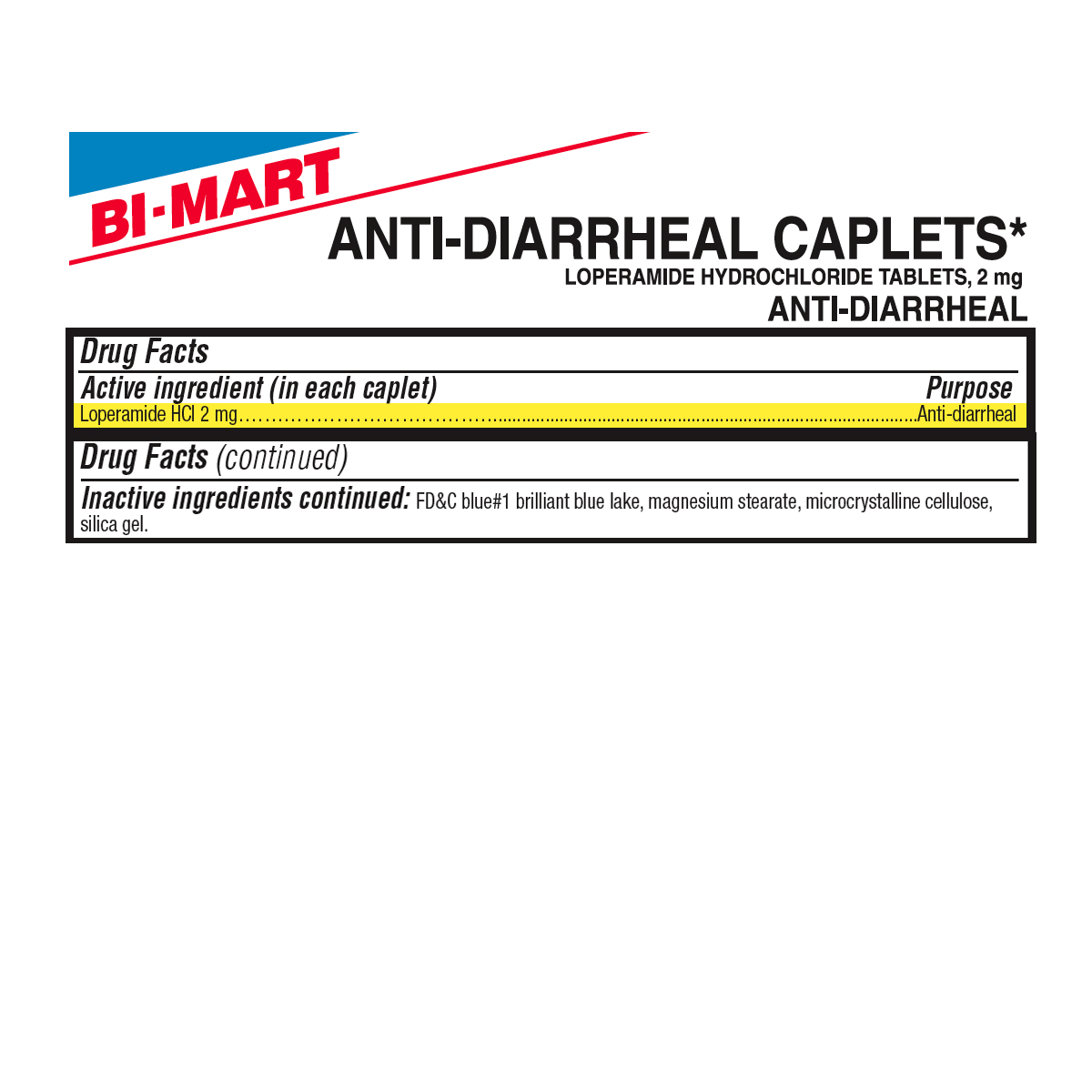 Bi-Mart Anti-Diarrhea Caplets are the fastest single ingredient OTC anti-diarrheal, allowing you to get back to doing the things you love. This product helps control the symptoms of diarrhea, including Travelers’ Diarrhea.Specifications