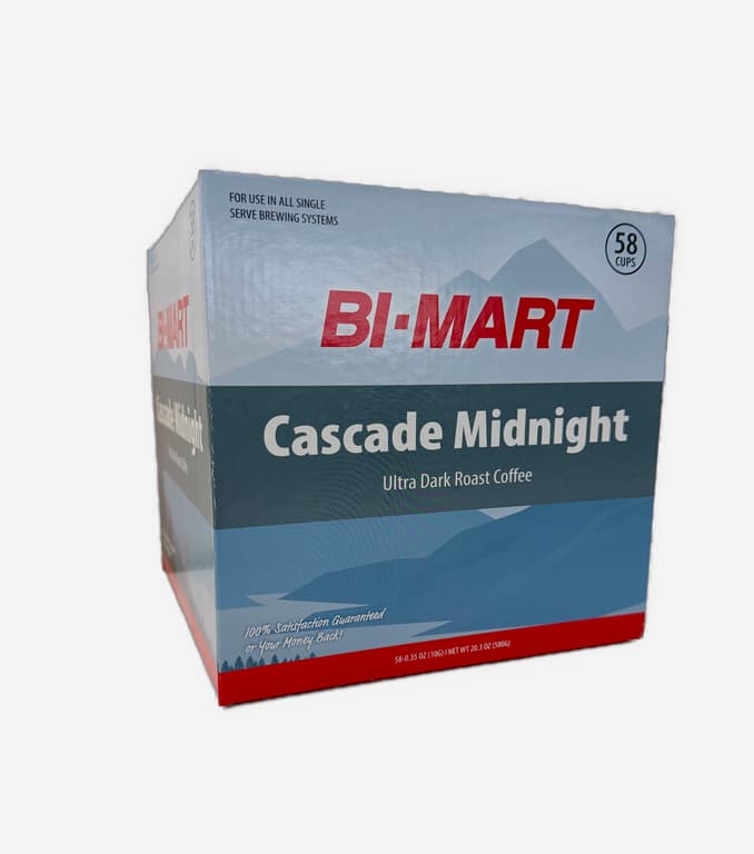 A. Introducing Bi-Mart's very own branded single serve coffee pods!; B. Three exciting new blends to choose from: Sunrise, Dusk and Midnight.; C. Also available in a convenient variety pack so you can try each blend whenever you'd like.; Whenever you crave a hot cup of coffee, we've got your whole day covered.