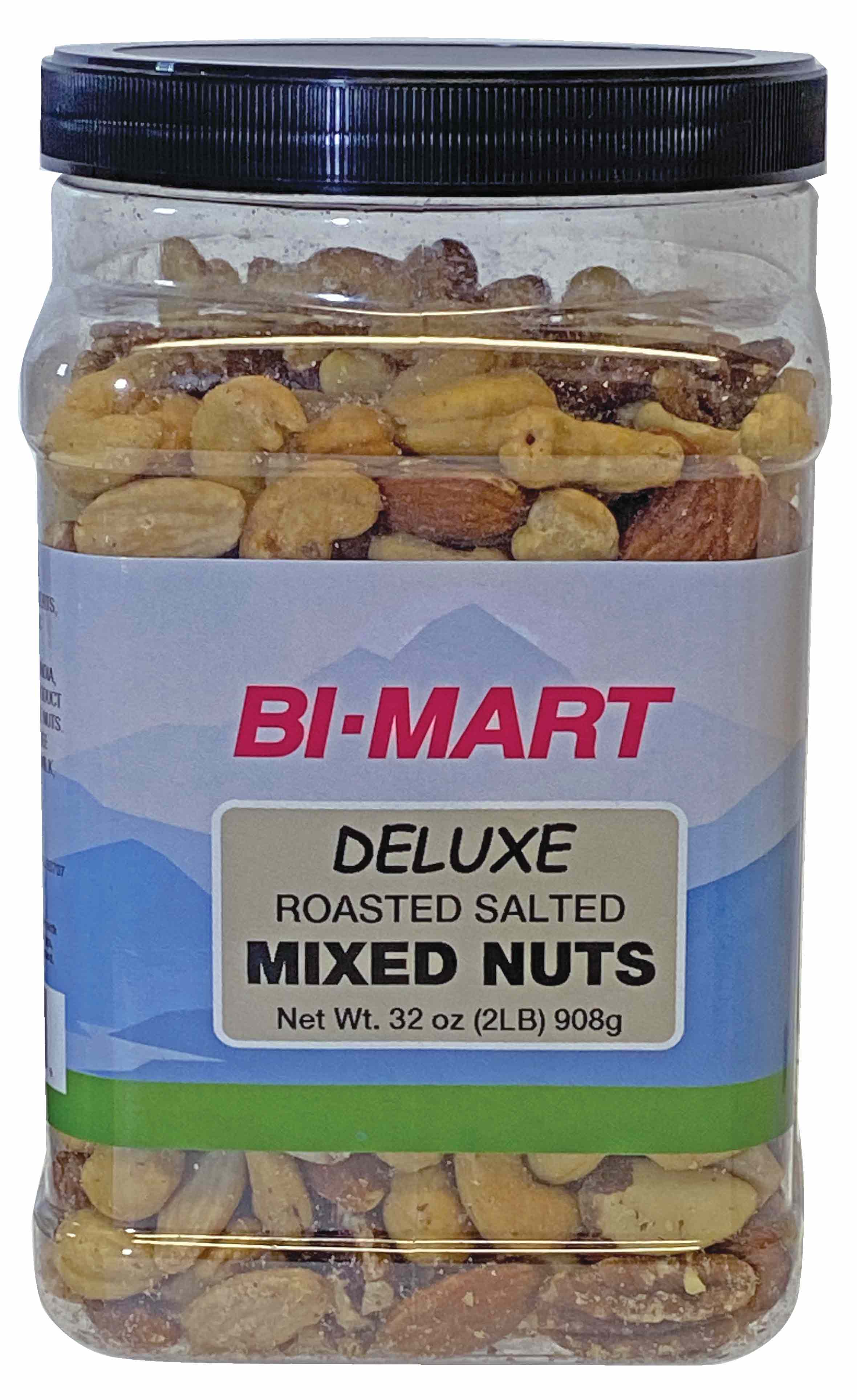 Bi-Mart Deluxe Mixed Nuts are the perfect any time snack! A premium mixture of rich roasted and salted nuts. Packaged in a 32 oz jar for on-the-go snacking or hosting with friends.Specifications