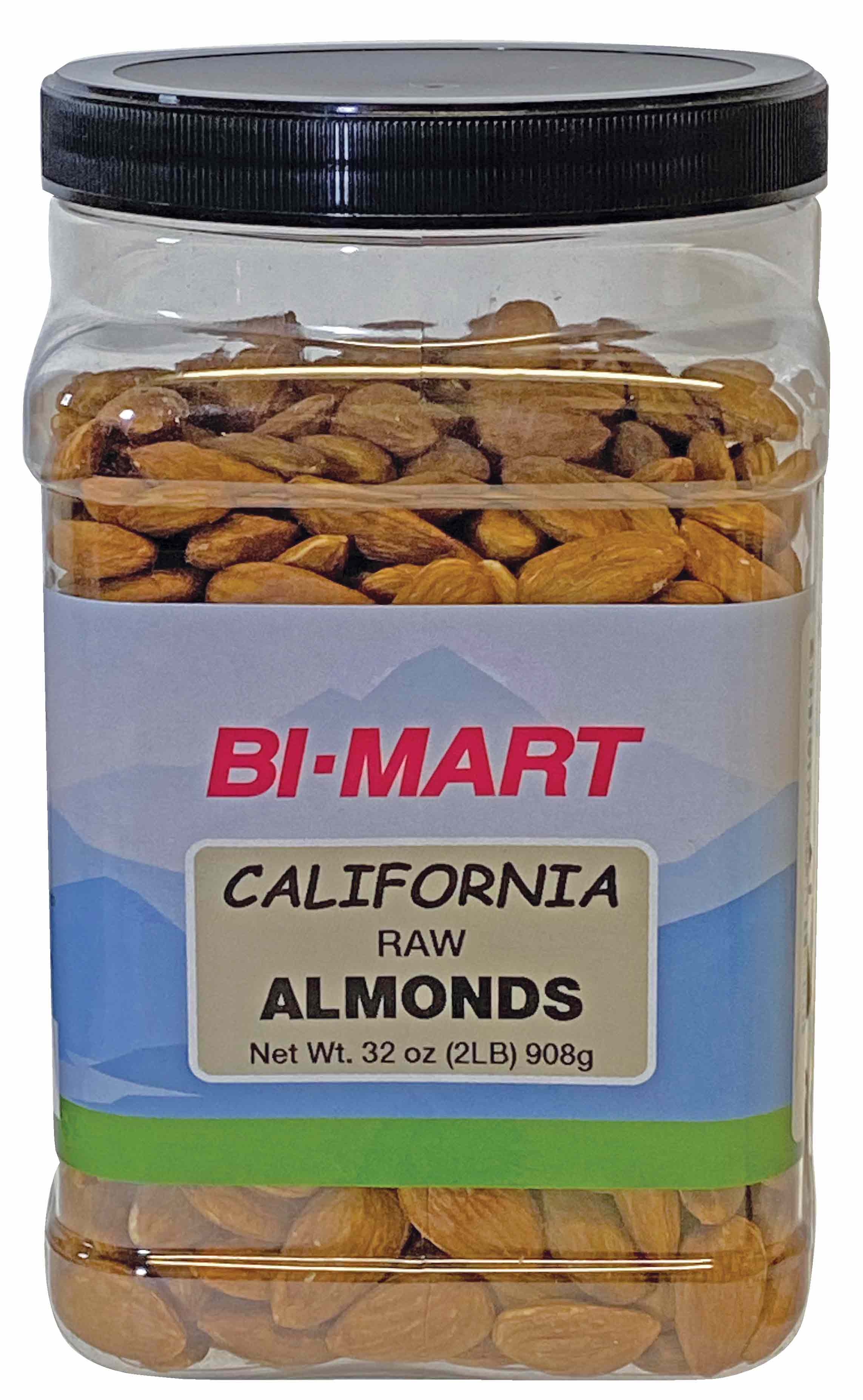Bi-Mart Whole Raw Almonds have a crisp crunchy texture! Distinctive in their oval shape that will both delight your eyes and your taste buds! Packaged in a convenient 32 oz jar for snacking and sharing.Specifications