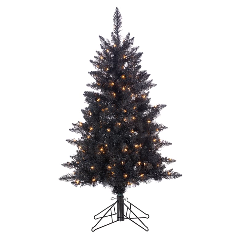 Black Tuscany Tinsel Tree 4 ft. with 150 UL Clear Lights and a 28 in. Base WidthSpecifications