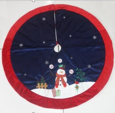 DECORATIVE BLUE TREE SKIRT WITH FUN SNOWMAN DESIGN