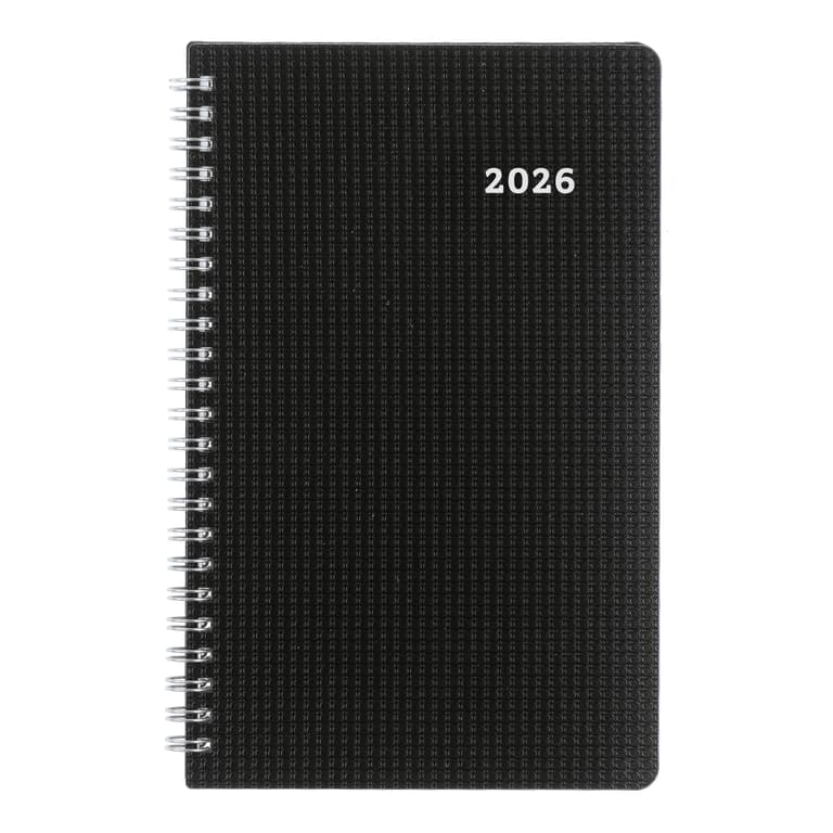 Manage scheduling with flexibility and ease. The Blueline Timanager DuraFlex Weekly/Monthly 5-Day Planner and Appointment Book features 13 months of planning, spanning December 2025 to December 2026, with one week per two-page spread in an appointment schedule format. The two-piece, heavy-duty poly cover is durably constructed with flexible twin-wire binding for a flat and sturdy writing surface. Appointment schedule from 7:00 a.m. to 8:30 p.m. in half-hour intervals. Ruled spaces for Saturdays and Sundays. Monthly planner before each month with objectives and important projects. Contains reference calendars of past, current and future months on each monthly spread, countdown of days passed and days to come (Julian dates), highlights holidays and phases of the moon. Weekly spreads include daily, weekly priorities, boxes for notes, correspondence and phone calls. Tear-off corners to help keep place. Extra bonus pages include: dedicated notes and contacts (telephone/address/email) sections. Black cover. English, size: 9-3/8" x 6". Eco-conscious planner crafted from 100% post-consumer recycled fiber paper materials. Certified under FSC license code: FSC C102682. The Forest Stewardship Council enables businesses and consumers to choose products made with materials sourced from responsible forestry, promoting environmentally appropriate, socially beneficial, and economically viable management of the world's forests. Made in Canada.Professional Time Management - Today's active managers have hectic schedules that often require a multitude of appointments and projects each day. The Blueline Timanager Series was especially designed as a survival tool for time management. Blueline is the brand of choice when it comes to selection and affordability. Used in the office, home or classroom, the extensive line of Blueline dated products offers the widest variety of formats and constructions to meet every possible need. Blueline Dated Products are produced using acid-free paper to prevent color-change over time and vegetable oil-based inks to help protect the environment. Blueline since 1917. (C5910V.81)Specifications