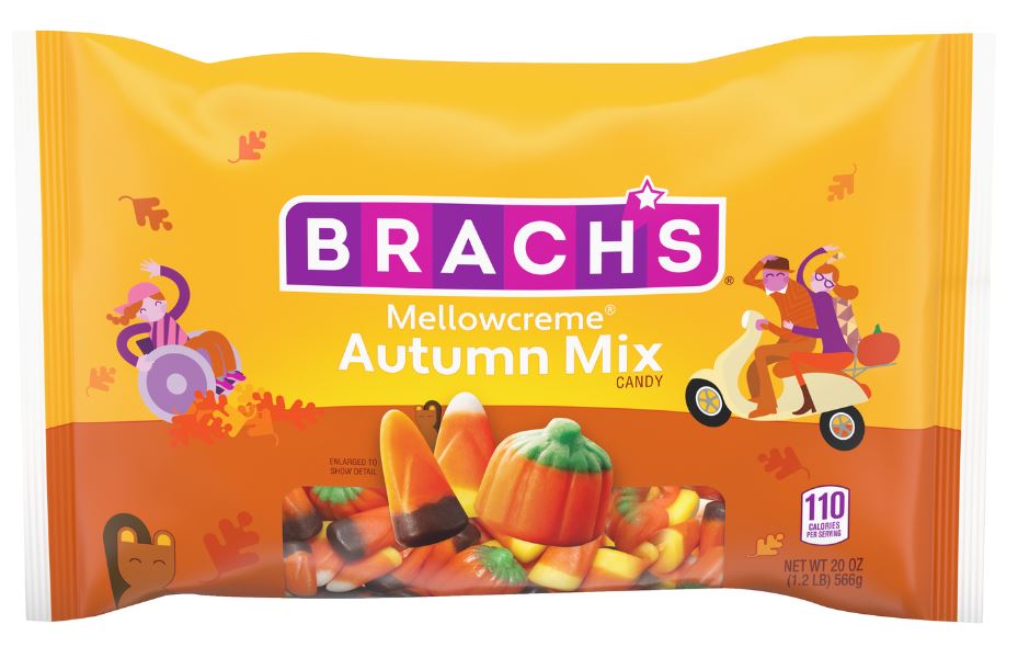 Taste the joy of everyday moments with our rich variety of deliciously crafted confections. Share a little, or a lot, and make your memories sweeter. Celebrate Fall with a distinctive, colorful mix of Brach's Mellowcreme Pumpkins, Harvest Corn, and Classic Candy Corn. Brach's Autumn Mix is a combination of seasonal fall favorites in one delicious candy mix.Specifications