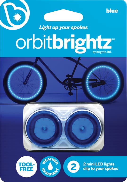 Orbitbrightz mini LED lights will make your bike hard to miss! These fun little lights snap on easily to most standard, round spokes. Place them anywhere that doesn't inhibit bike function and you're ready to roll! Just twist the lights to turn them on or off. Use one color or up to all four to design a unique pattern masterpiece!Specifications