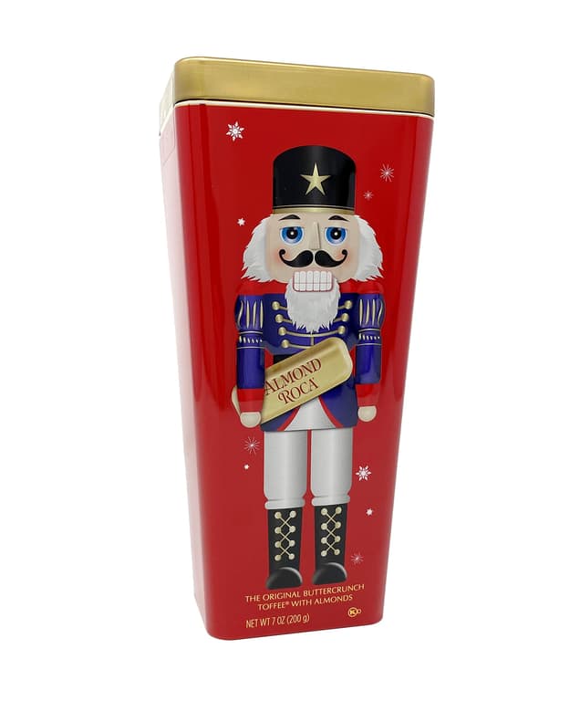 10 OZ; BUTTER CRUNCH TOFFEE WITH ALMONDS; INDIVIDUALLY WRAPPED; MILK CHOCOLATE; NUTCRACKER TIN