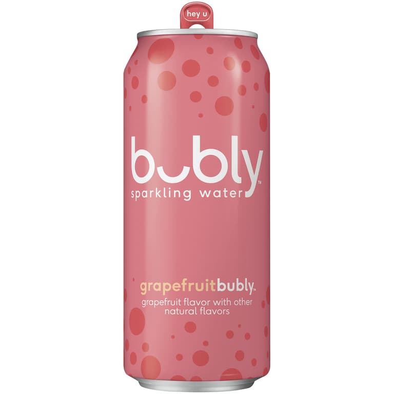 0 Calories. 0 Sweeteners. All Smiles; Each flavor comes with a different smile and greeting to match its unique personality; Includes 1 16oz can of bubly Sparklig Water Grapefruit flavor; Refreshing crisp bubly sparkling water with great tasting natural grapefruit flavor