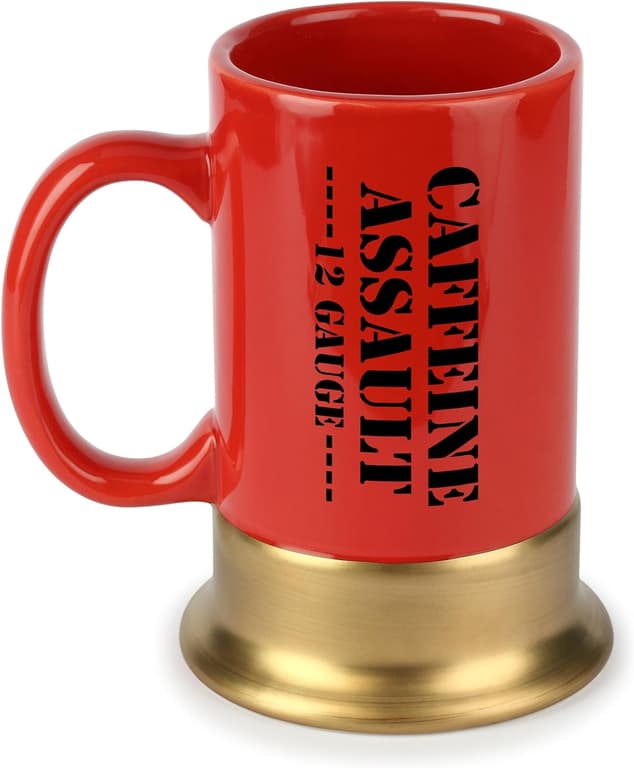 Your daily grind stands no chance against Our Caffeine Assault Weapon! This Caliber Gourmet Mug is the perfect "Defense" for whatever obstacles your day decides to throw at you. So, Load up your 12 gauge Caffeine Assault Mug with that favorite caffeine packed beverage you love and blast through your day with relative ease.Specifications