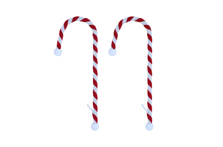 Includes 2 Candy Cane Stocking Holders; Kid and Pet friendly, light weight design will hold stockings up to 10 lbs.; White rubber ends hold in place while protecting your mantel